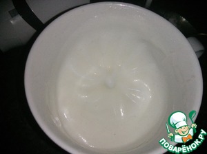 В молоко добавляем желток взбиваем, постепенно всыпаем муку, продолжая взбивать.