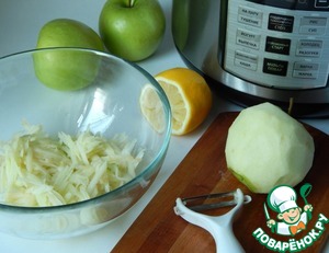 Яблоки очистить, натереть на крупной терке и полить лимонным соком.