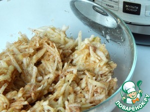 В чашу мультиварки выложить слоями приготовленные ингредиенты: