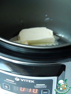 В чашу мультиварки выложить масло и растопить в режиме «Жарка», 10 минут должно хватить.
