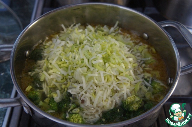 Добавить брокколи и спаржу и варить еще 5 минут. -
