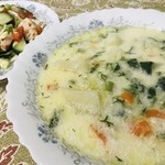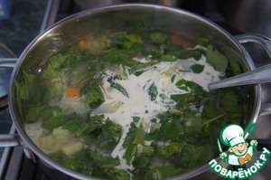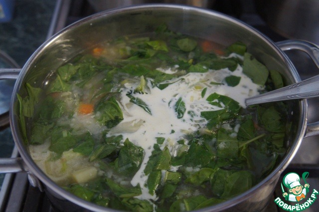 Для непостного варианта после добавления шпината и порея влить сливки и варить, не доводя до кипения, 5 минут.