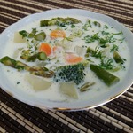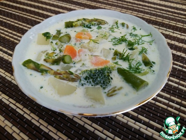 Очень свежий, легкий, весенний супчик. Правда, довольно затратный... спаржа и брокколи очень дороги.
