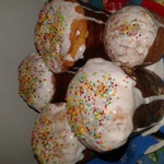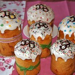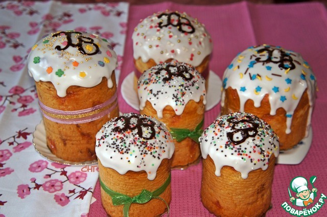 Дать постоять в форме 10 минут, а затем извлечь из форм. Пока куличи теплые, смазать их глазурью.