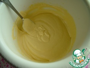 Сливочное масло и сахарную пудру нужно взбить миксером на средней скорости добела в легкий крем. Это займет около 8-10 минут. Затем по одной ложечке, не прекращая взбивание, добавляем размешанные яйца. На это уйдет еще 4-5 минут. Должна получится пышная однородная эмульсия-крем. -