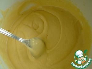 Добавляем в крем трижды (!) просеянную вместе с разрыхлителем и мелкой солью муку и молоко, щепотку ванилина или несколько капель ванильной эссенции и соединяем в тесто на самой низкой скорости миксера.