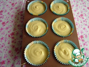 Выкладываем тесто в формочки для капкейков. Данное количество теста рассчитано на 12 стандартных кексов. Не заполняйте формы более чем на 3/4 (лучше на половину), потому что кейки сильно поднимаются в процессе выпечки.
