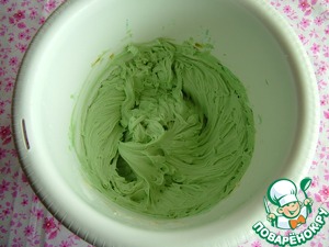 Для крема холодный маскарпоне взбиваем с сахарной пудрой и щепоткой ванилина. Взбиваем аккуратно, на низкой скорости миксера - чтобы не перевзбить и получить масло. Можно подкрасить крем пищевым красителем. В качестве натурального зеленого красителя можно попробовать фисташковую пасту, чай матча, сок шпината или петрушки. А можно обойтись и без подкрашивания крема, это не принципиально!
