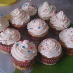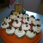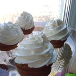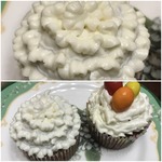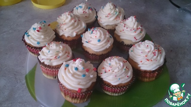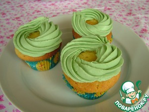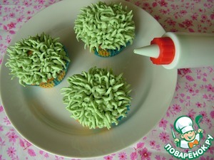 Остывшие кексики украшаем кремом. Для "травки" используем насадку с маленьким отверстием.