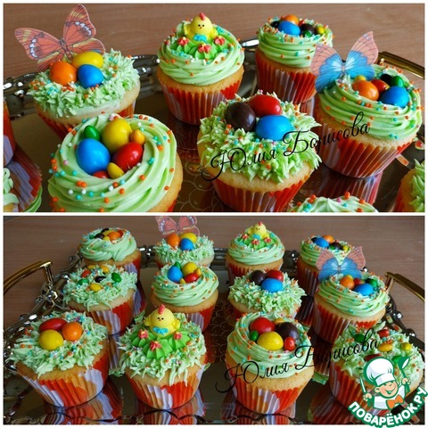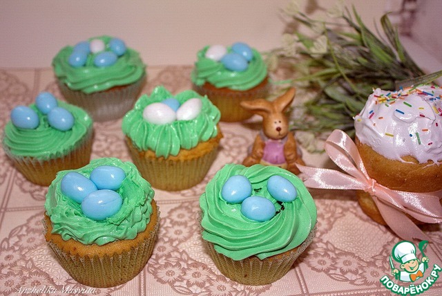 В преддверии Пасхи хочу поделиться с вами своим любимым рецептом капкейков. Пирожные по этому рецепту получаются необыкновенно нежными и вкусными, как настоящие тортики! Ну а оформление, соответственно тематическое ;) Дети будут в полнейшем восторге от такого пасхального десерта!