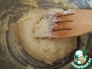 В слегка остывшее тесто вбить яйца по одному, перемешивая лопаткой. -