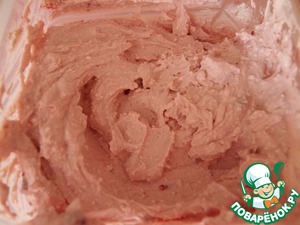 Пока выпекаются пирожные, приготовить начинку. Для этого творог смешать с вишневым низкокалорийным конфитюром d"arbo.