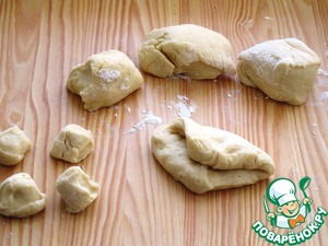 Дрожжи активировать тёплым молоком и влить в мучную смесь. Замесить тесто, чтобы оно стало тугим и однородным. Накрыть салфеткой и поставить в тёплое место для расстойки, пока тесто ни увеличится раза в два. Затем к тесту подмешать мягкое масло и вымесить до готовности.