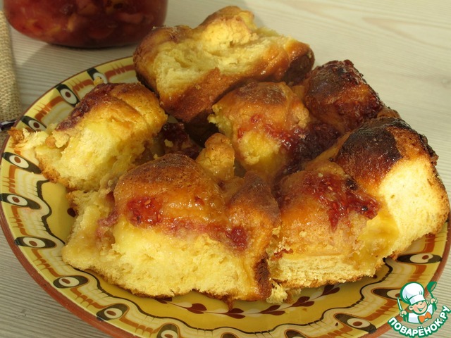Сверху украсим вареньем. И поставим печься при 190 С минут 30.