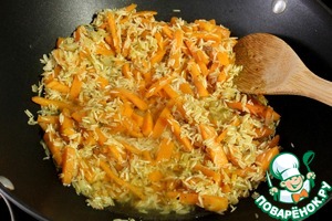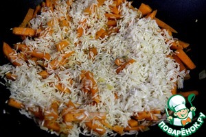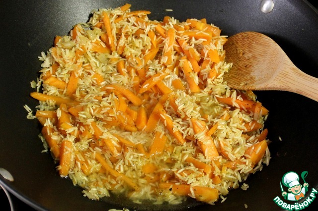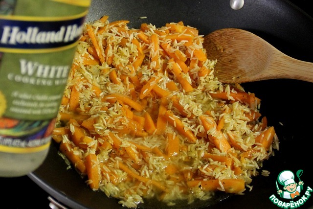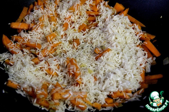 Добавляем рис ТМ Мистраль "Ориент" длиннозерный и готовим помешивая 2-3 минуты.