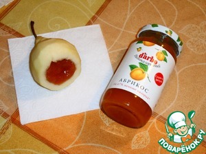 Рецепт «Груша, запеченная в тонком слоеном тесте с абрикосовым конфитюром»: