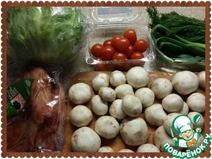 Ингредиенты для «Салат с сыровяленой куриной грудкой и грибами»: