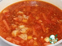 После чего добавляем нарезанный произвольно картофель. Добавляем воды - столько, чтобы получился густой суп.