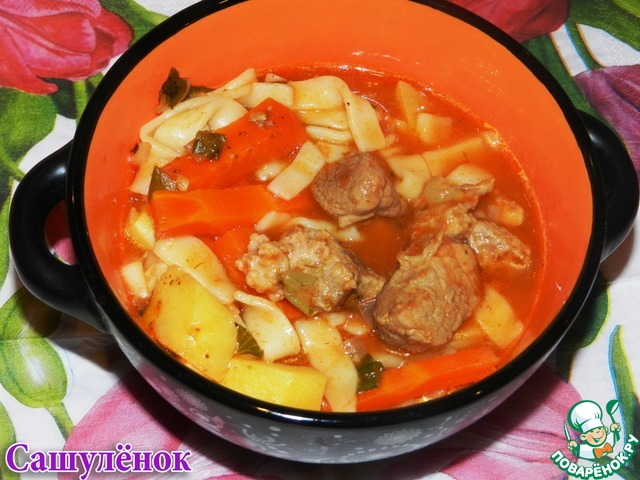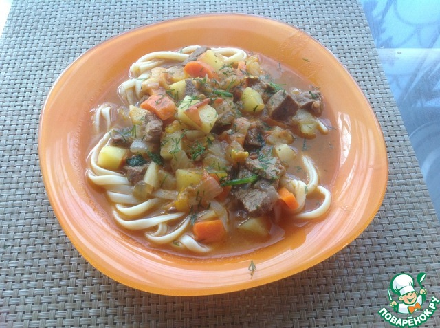 Описание:Лагман - прекрасное блюдо, которое хорошо тем, что его можно использовать и как первое, и как второе блюдо. Кроме того, лагман прекрасно хранится несколько дней в холодильнике и становится еще вкуснее. Да и вообще, это блюдо для тех, кому надоели супы и борщи.