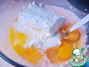 Смешать творог, сахар, яйца, ванилин, йогурт, разрыхлитель теста и кус-кус.