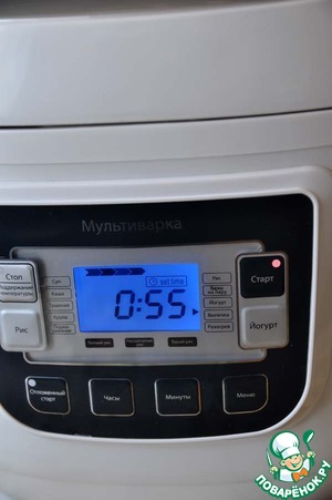 Крышку закрываем, ставим режим "Выпечка" на 55 минут, можете даже на 60 минут поставить.