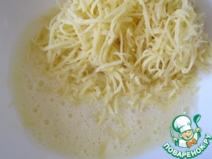 Яйца взбить, соединить с натертым сыром, хорошо перемешать.