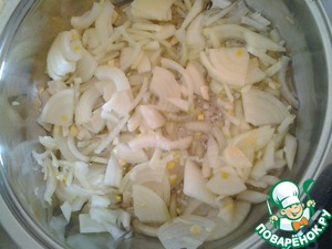 Грибы разморозить. Можно взять больше, 400-500гр.