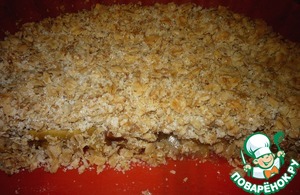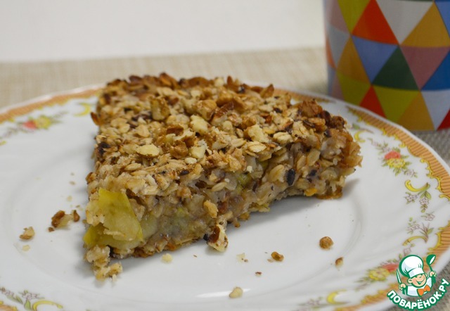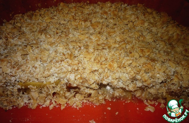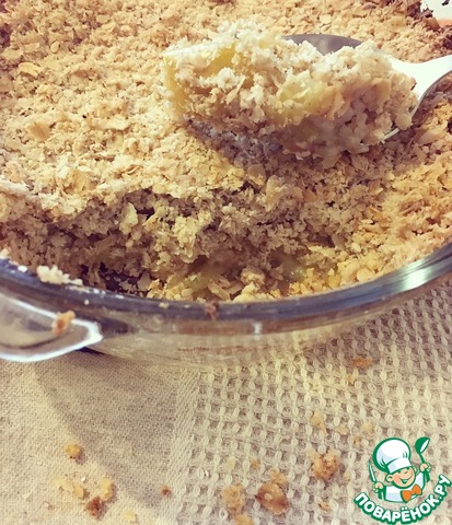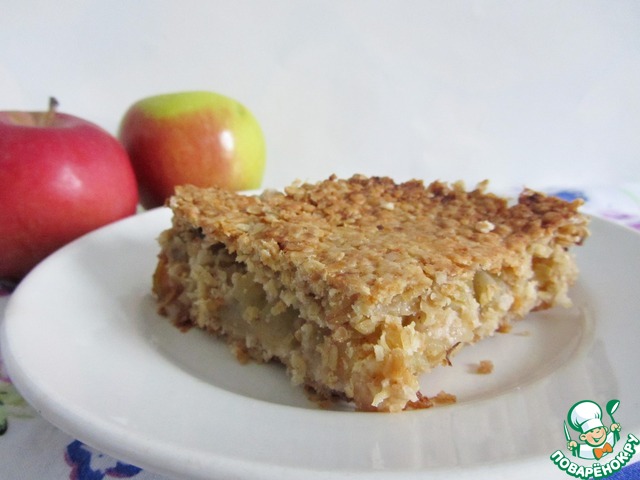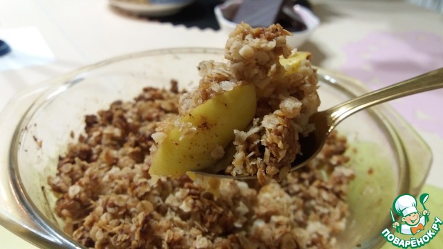 Не знаю, как правильно назвать это блюдо-запеканка, пирог или крамбл, но это не важно, главное - получилось очень вкусно!! Нежная, ароматная основа из яблок под хрустящей, рассыпчатой корочкой из овсяных хлопьев. Да и калорий не так много, можно смело себя побаловать!