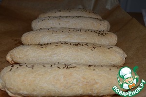 • Выкладываем булочки на противень застеленный пергаментом, смазываем маслом, посыпаем тмином и даем постоять 10-15 минут