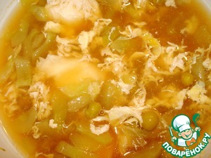 Как закипит, разбить яйца и аккуратно вылить их в бульон, не превратив их в смесь. Варить 1 минуту, чтобы белок свернулся.