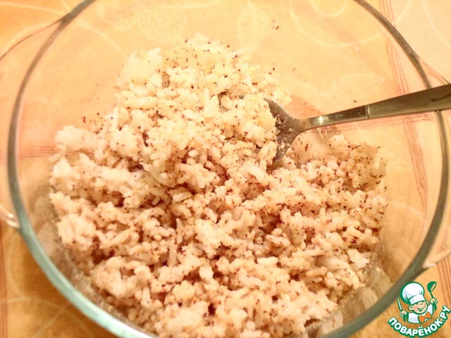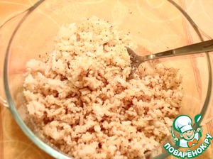 Смешайте отваренный рис, 5 ст. л. обжаренного молотого миндаля и муку.