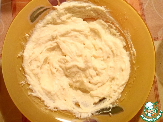 Творог, яйцо и сахар взбейте венчиком до однородности.