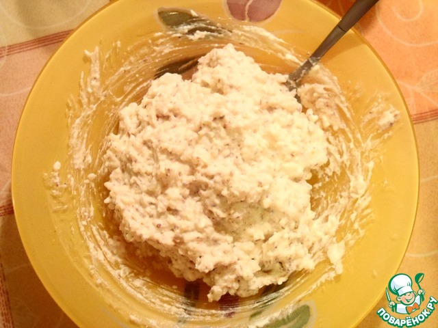 Постепенно добавляйте рисово-мучную смесь к творожной, каждый раз хорошо перемешивая. Уберите смесь на 20 минут в холодильник.