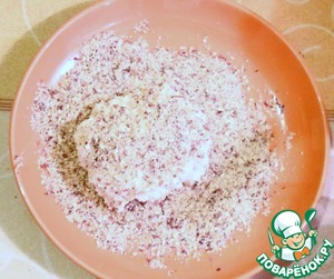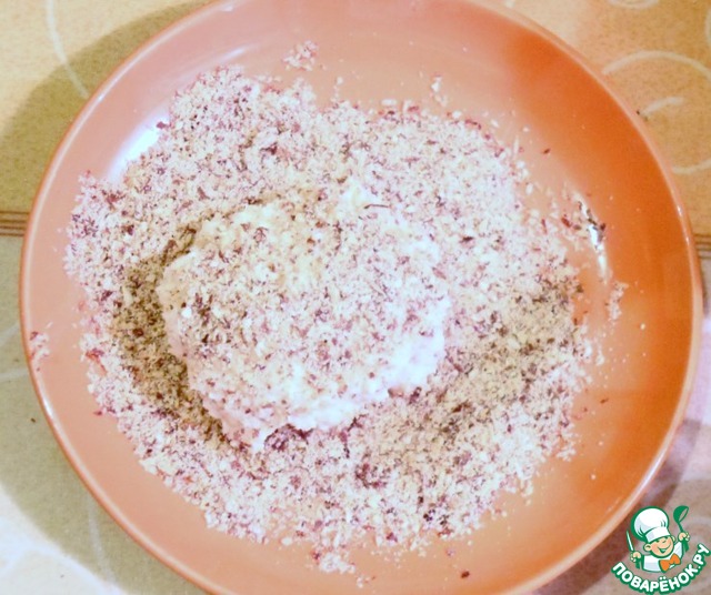 - Миндаль (обжаренный, мелко молотый, для биточков + для панировки) — 5 ст. л.