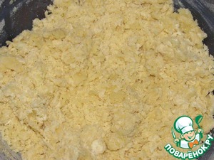 Из муки, масла, сахара и 1 стакана кипящего молока замесить тесто. Оно будет очень рассыпчатым.