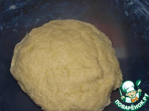 Когда тесто увеличится (у меня за 1 час увеличилось в 1,5 раза), вмешать в него 3 желтка, взбитые со щепоткой соли, затем взбитые в пену белки и запаренный изюм.
