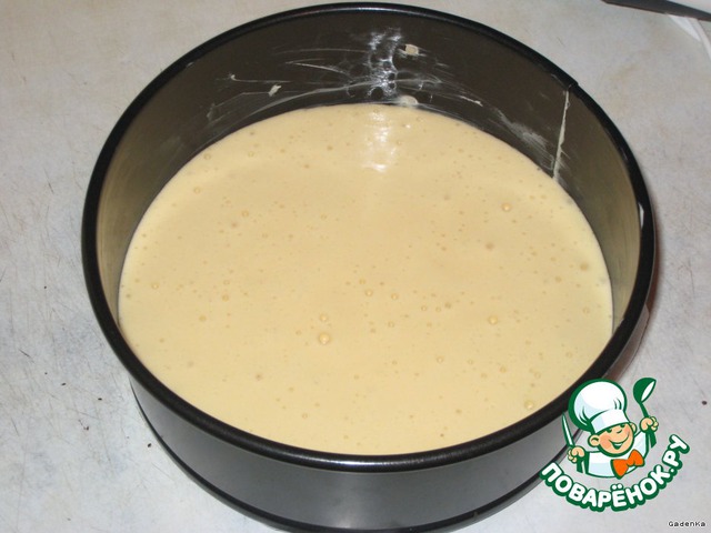 Вылить тесто в разъемную форму, где потом и будет делаться торт. -