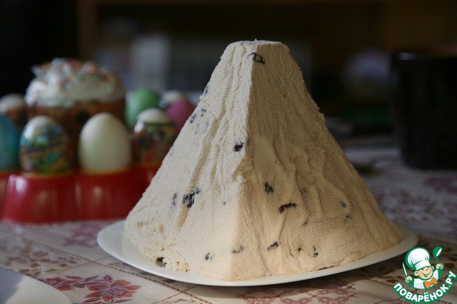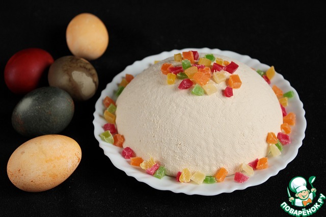 Очень люблю творожные пасхи, а этот рецепт заинтересовал тем, что готовится из творога, который получается из ряженки, кефира и сметаны. Красная - от древнерусского "красивая", она действительно красивая с нежно кремовым цветом, интересным вкусом, напоминающим мороженое крем-брюле.