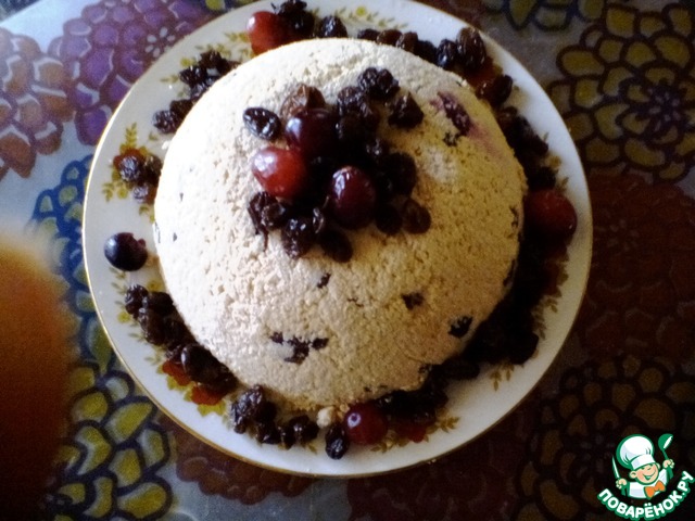 Когда масса стечет, у меня это заняло где-то 4 часа, добавим сахарную пудру (можно и сахар, но я не люблю хруста на зубах) и ванилин по вкусу, хорошо перемешаем. Можно добавить запаренный изюм, курагу, клюкву. Я в следующий раз так и сделаю.