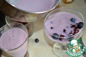 На дно бокалов (форм) выкладываем часть хлопьев с конфитюром, заливаем все это кефиром. Если есть свежие ягоды-можно кинуть несколько штук в бокал. Ставим в холодильник.