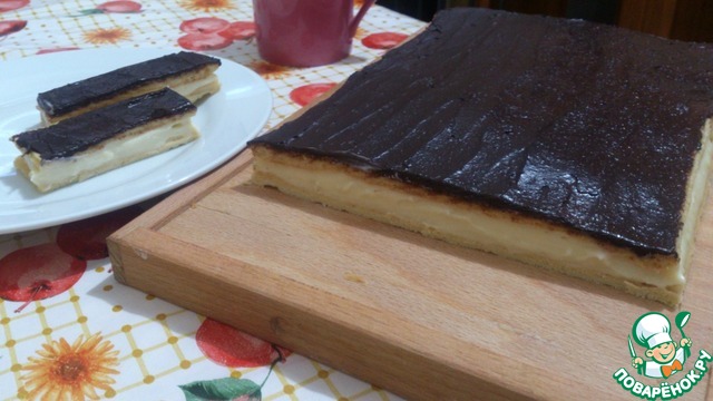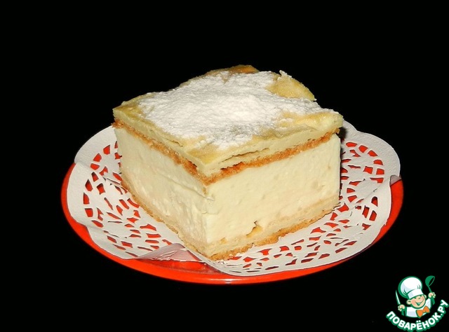 Поляки называют этот десерт тортом. Не совсем с ними согласна, для меня это скорее вкусный пирог выходного дня с кремовой начинкой, до торта в моём понимании слегка не дотягивает.