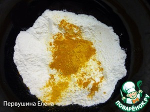В отдельную чашку кладем столовую ложку с горкой муки, добавляем куркуму и