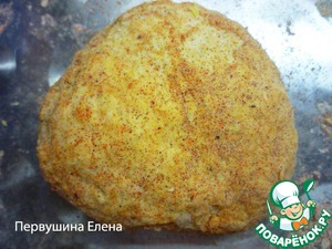 Ниже фото разреза крупным планом - такие цвета проявляются при вышеуказанных пропорциях паприки, куркумы и какао.