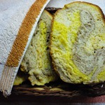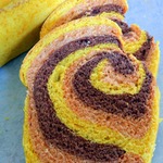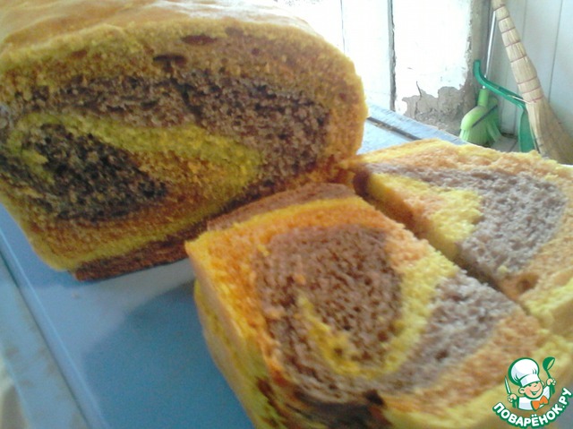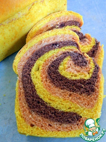 Смазываем форму маслом (если требуется) и определяем туда наш хлебный рулет. Отправляем хлеб в разогретую до 170-180*С духовку на 30-40 минут. Цвета с куркумой и какао в процессе выпекания проявятся ярче раза в три, так что нужно учитывать это при добавлении в тесто этих ингредиентов.