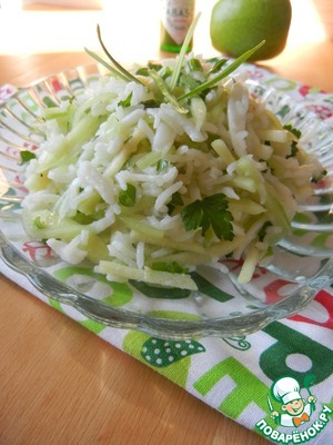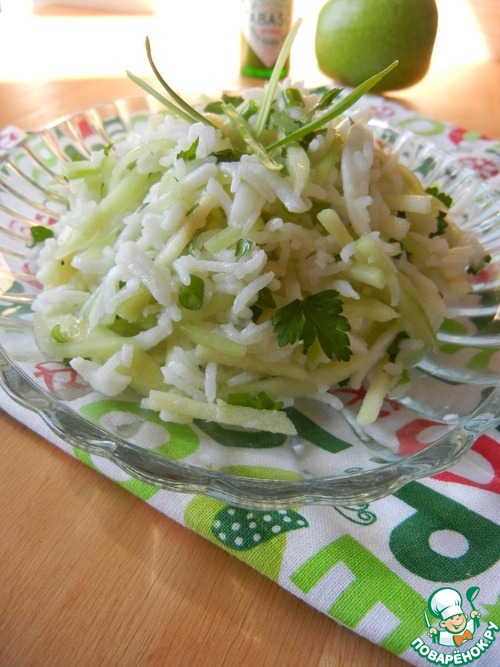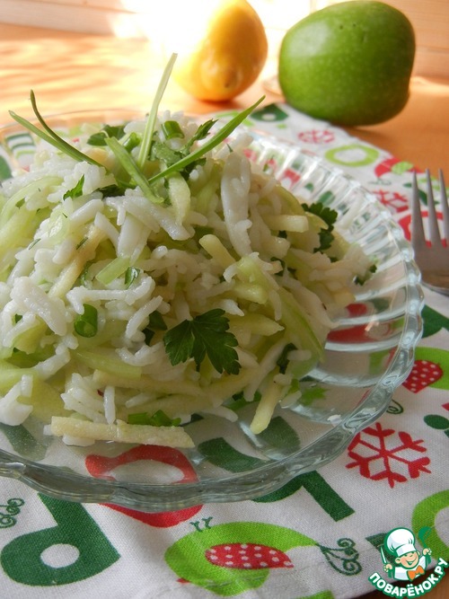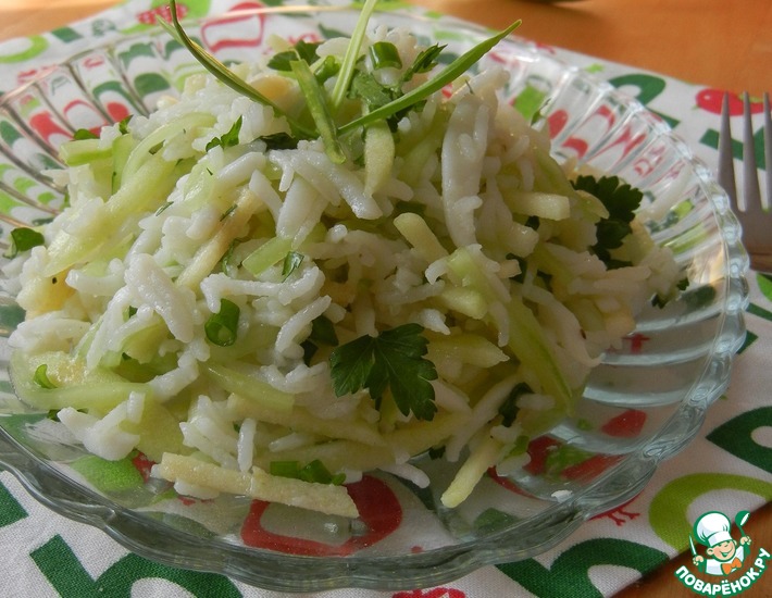 Рецепт «Салат из риса с кальмаром и зеленым яблоком»: