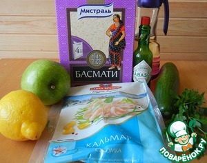 Ингредиенты для «Салат из риса с кальмаром и зеленым яблоком»:
