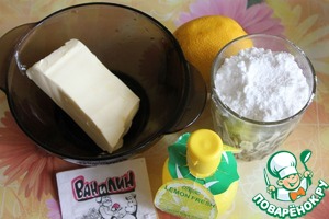 Теперь нам понадобятся - цедра одного лимона, сок половины лимона, сахарная пудра-100 г, масло сливочное размягченное -80 г, ванилин -0,5 г. Все смешать и взбить