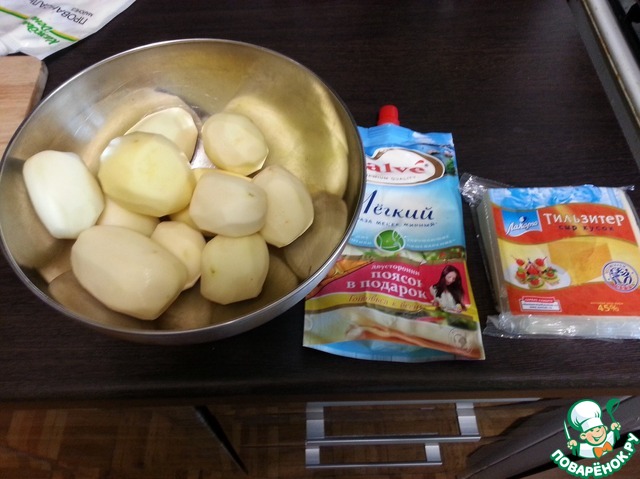 Руками перемешаем картофель, чтобы майонез полностью покрыл каждый кусочек