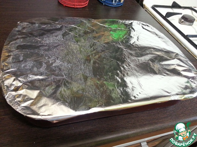 Закроем противень фольгой и поставим в предварительно разогретую до 200 градусов духовку на 30 минут