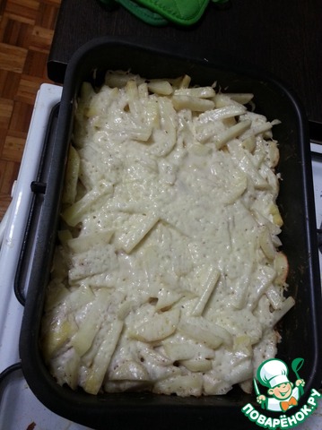 Через 30 минут снимем фольгу и отправим картошку обратно в духовку еще минут на 15, чтобы сыр покрылся корочкой